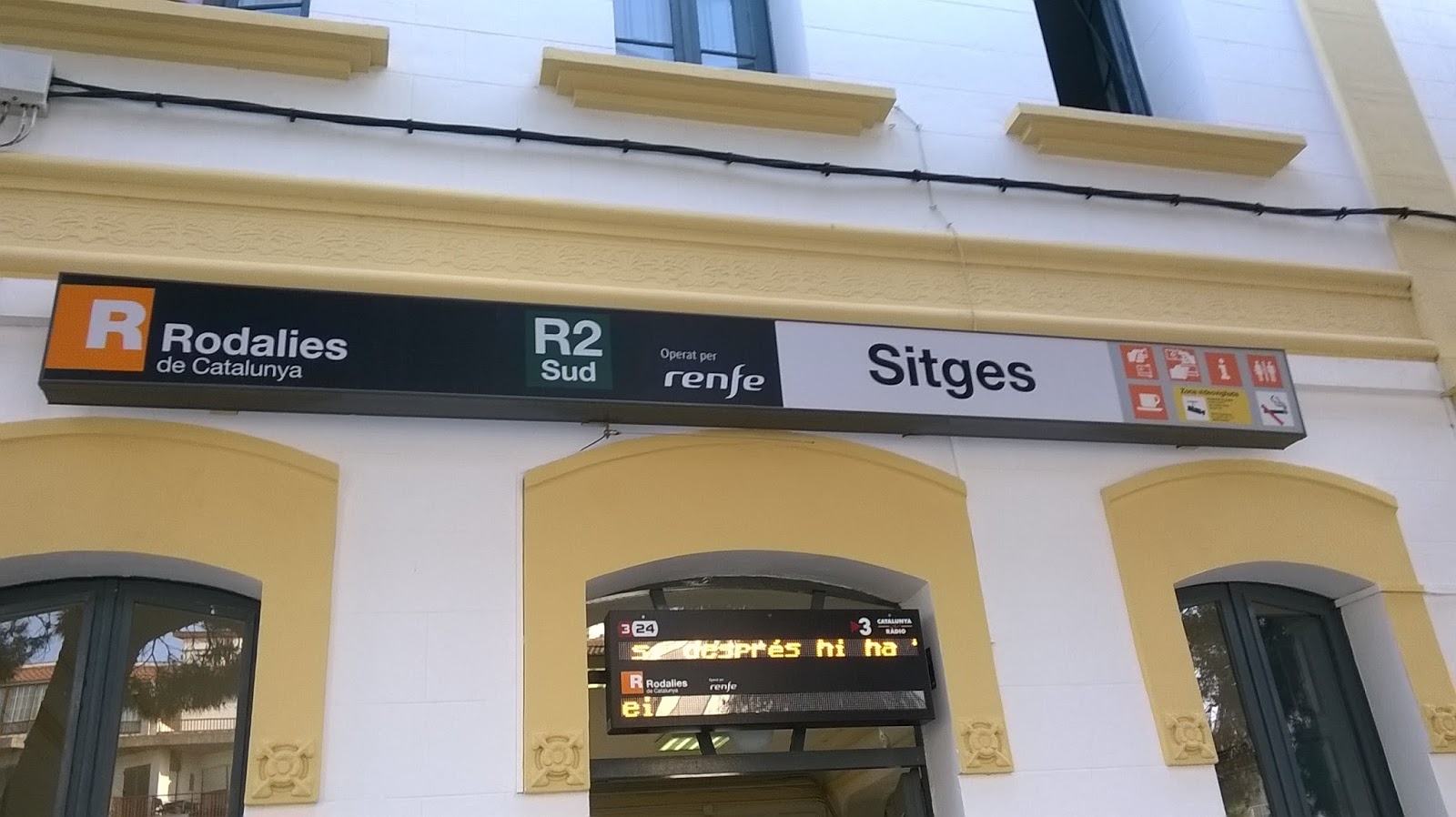 Acordei bem cedo, espontaneamente, aguardei algum tempo assistindo televisão e quando clareou fui para a estação de Sants, a cinco minutos a pé do apartamento e comprei passagem para o próximo trem em direção à Vilanova i la Geltrú com destino a Sitges (pronuncia-se "sítchias"), uma espécie de Mônaco local. A viagem dura cerca de quarenta minutos e há trens a cada aproximadamente meia-hora (€4,10), linha R2 Sud. Após descer na estação você vai acompanhando a linha, contorna-a à esquerda, passa por um supermercado e logo em seguida vem a estação (que não possui banheiros). O Ofício de Turismo está logo ao lado, mas somente abre às dez horas. Como não pude contar com internet fui salvo por um mapa em um poste e algumas placas indicativas. O centro comercial fica uns dez minutos a pé em direção à praia.